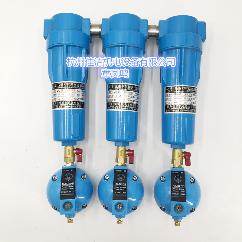 杭州佳潔機(jī)電專業(yè)生產(chǎn)硐室壓風(fēng)SUS304不銹鋼三級(jí)壓風(fēng)過(guò)濾器,簡(jiǎn) 稱三級(jí)壓風(fēng)不銹鋼過(guò)濾器過(guò)濾器,型號(hào)分別為JSFT-30 JSFA-30 JSFH-30,也叫避難硐室三級(jí)壓風(fēng)過(guò)濾器。主要是用在煤礦避難硐室或者救生艙的壓風(fēng)系統(tǒng)中,接在壓風(fēng)管道上。一套過(guò)濾裝置中有三個(gè)過(guò)濾器,外表看起來(lái)一樣,內(nèi)置不 同精度的過(guò)濾濾芯。經(jīng)過(guò)一、二級(jí)三級(jí)過(guò)濾后,能過(guò)濾出壓風(fēng)管道中的水珠、灰塵、油滴.異味等雜質(zhì),通過(guò)下邊的排水口排出去,干凈的氣體通過(guò)末端安置的消音器降低噪音 后釋放出來(lái)。我公司這套三級(jí)過(guò)濾器能把雜質(zhì)過(guò)濾到0.01微米以下,為避難硐室創(chuàng)造良好的空氣條件。