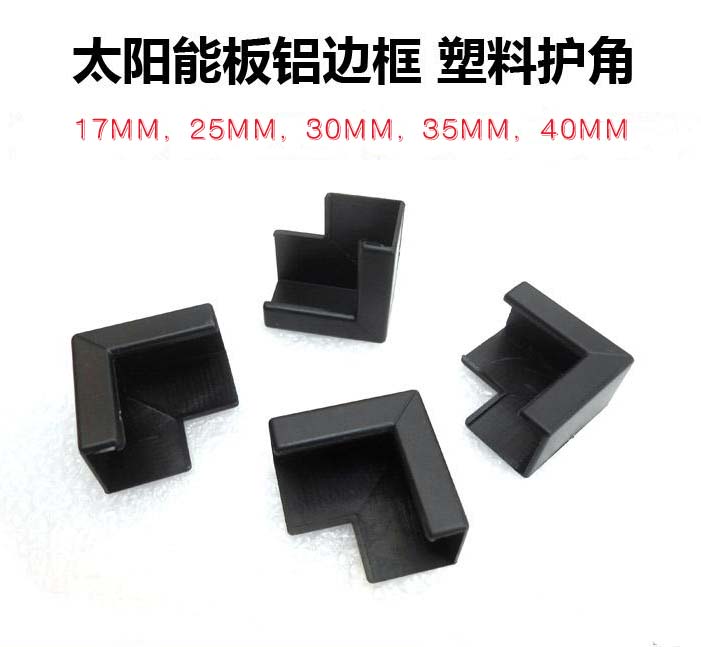 太陽(yáng)能光伏組件護(hù)角(太陽(yáng)能電池板鋁邊框護(hù)角),采用工程級(jí)ABS塑料注塑成型,強(qiáng)度高。護(hù)角結(jié)構(gòu)簡(jiǎn)單,使用時(shí)電池板可垂直快速連接,組裝方便。護(hù)角的邊角為圓弧狀,有效避免在運(yùn)輸、組裝等過程中劃傷人體或其他物體,(現(xiàn)有規(guī)格25*25,30*30,35*35,40*40MM等)適合150-230W左右鋁過框的為35*50MM的,150W以下鋁邊框?yàn)?5*25的電池板包裝時(shí)使用,并可根據(jù)客戶要求開發(fā)其他規(guī)格護(hù)角!
