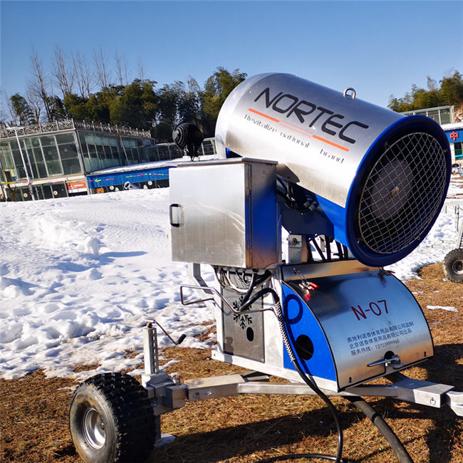 造雪機是在水和氣結(jié)合噴出水霧和雪核利用外界濕度和溫度造雪,是一種可以把大量液態(tài)水轉(zhuǎn)化成為高壓霧化冰晶的電氣裝置,主要用于人工造雪,布置人工滑雪場地、消防等方面。這種造雪機引進的是歐洲的核心技術(shù),采用大口徑,多噴嘴的設(shè)計,自行移動速度快,能夠?qū)⒒﹫鲅┝吭鞚M,并且造出的雪質(zhì)細(xì),細(xì)到可以制作一種高難度雪雕,對于我們的滑雪場來說,這種雪質(zhì)可以讓雪的松軟度更適當(dāng),也更能讓滑雪愛好者在滑雪感受上得到很大的滿足,總之能夠帶給滑雪場游客滑雪體驗。