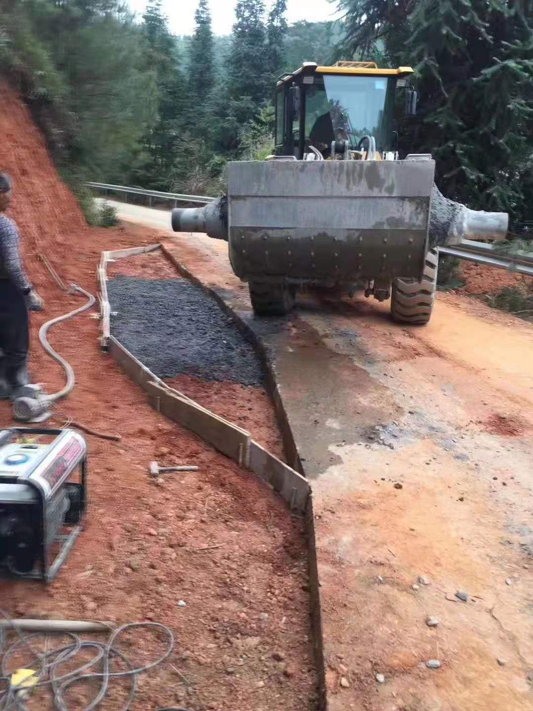 攪拌斗裝載機(jī)適用在中小建筑,公路施工,工地需要大量的混泥土。在配比混泥土?xí)r,一般建筑施工企業(yè)所需的原材料(石子,沙子及水泥)大都是用人手推車從料場搬運(yùn)至攪拌機(jī)中攪拌混合,這種依靠人工上料人工搬運(yùn)的方法,勞動(dòng)強(qiáng)度大生產(chǎn)效率低,已不適合現(xiàn)代生產(chǎn)要求:而大型重載鏟車有不適合用,為此將農(nóng)用拖拉機(jī)改裝為實(shí)用性小鏟車,地解決這一問題攪拌斗裝載機(jī)利用一臺(tái)裝載機(jī)把鏟斗部位拆除,安裝上鏟斗式攪拌缸及其配套系統(tǒng)就是一臺(tái)裝載機(jī)鏟斗式混凝土攪拌機(jī),實(shí)現(xiàn)自行上料、拌合、 轉(zhuǎn)場、卸料功能。裝載機(jī)鏟斗式液壓混凝土攪拌機(jī)外觀呈鏟斗狀,即把單缸強(qiáng)制式混凝土攪拌機(jī)改裝,外觀呈裝載機(jī)鏟斗狀、連接在裝載機(jī)鏟斗部位,攪拌機(jī)工作主軸由低速大扭矩、動(dòng)力來自裝載機(jī)的液壓泵,操控裝置安裝在裝載機(jī)駕駛室操作臺(tái),通過操控?cái)嚢铏C(jī)工作。