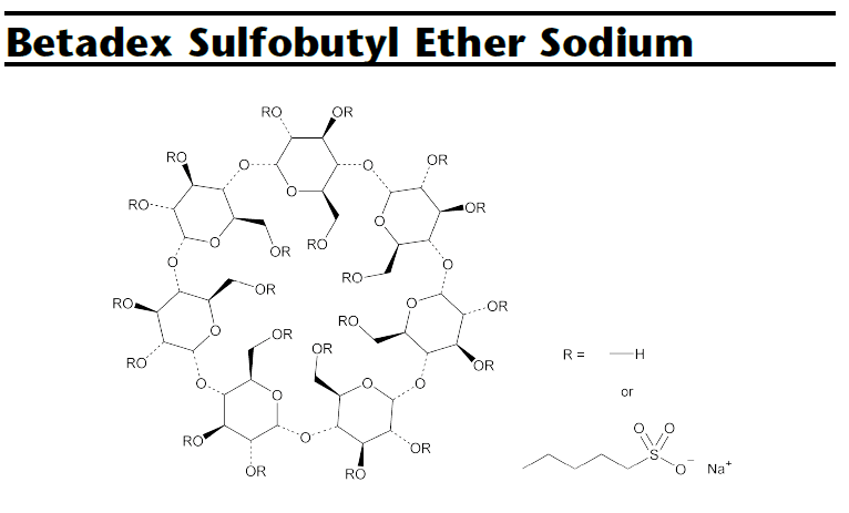 磺丁基倍他環(huán)糊精又名磺丁基醚倍他環(huán)糊精鈉,是陰離子型高水溶性環(huán)糊精衍生物,能很好地與藥物分子包合形成非共價(jià)復(fù)合物,從而提高藥物的穩(wěn)定性、水溶性、安全性,降低腎毒性、緩和藥物溶血性,控制藥物釋放速率,掩蓋不良?xì)馕兜取?nbsp;
