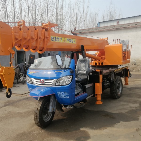 裝在三輪上的吊車,俗稱“三蹦子”的五征、時風牌三輪,經(jīng)過改裝即可成為一款起重量達3噸的小型吊車。