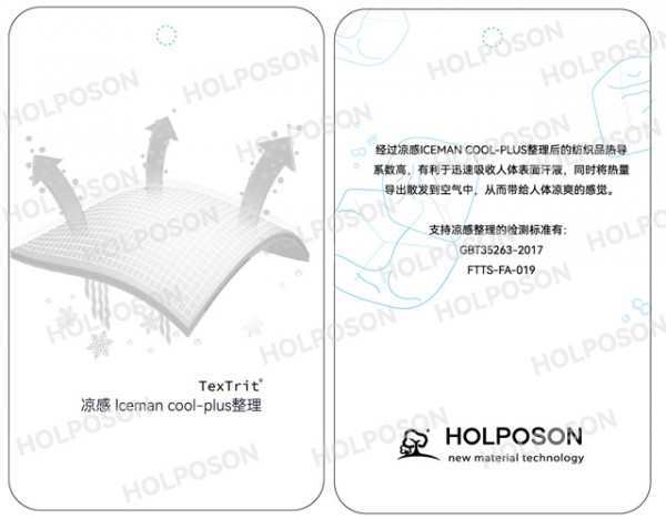 HOLPOSON? Iceman COOL-PLUS 是本公司以超細(xì)云母粉為主,并運(yùn)用萃取技術(shù),經(jīng)科學(xué)精心開發(fā)研制的紡織品用后整理劑。它能提高織物的熱導(dǎo)系數(shù),迅速吸收人體表面汗液,同時將熱量導(dǎo)出散發(fā)到空氣中,從而帶給人體涼爽的感覺。本產(chǎn)品還具有一定的防紫外線效果。主要適用于內(nèi)衣面料、襯衫面料、床上用品面料、登山服、高爾夫服裝、休閑系列服裝面料、各種服飾面料、家用紡織品面料等。