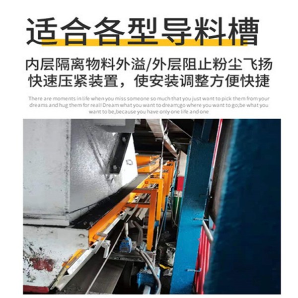 主要用于皮帶輸送機的導料槽密封,常見于煤礦、電廠、水泥廠、港口等高粉塵環(huán)境。