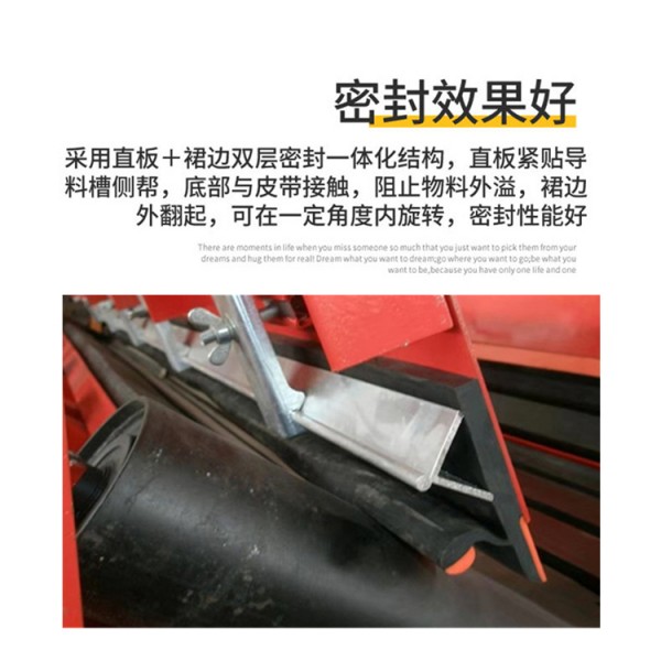 裙邊依靠橡膠彈性自動貼合皮帶,即使皮帶跑偏也能通過單邊圓弧過渡設計避免損傷,并自動復位。