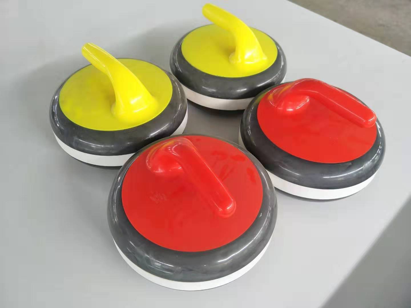 教學(xué)版陸地冰壺采用新型復(fù)合材料材質(zhì),底部配有滾珠。可用于青少年兒童的教學(xué)訓(xùn)練。