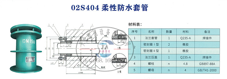 02S404型柔性防水套管廣泛用于建筑、化工、石油、自來(lái)水廠、污水處理、核電工程等單位。